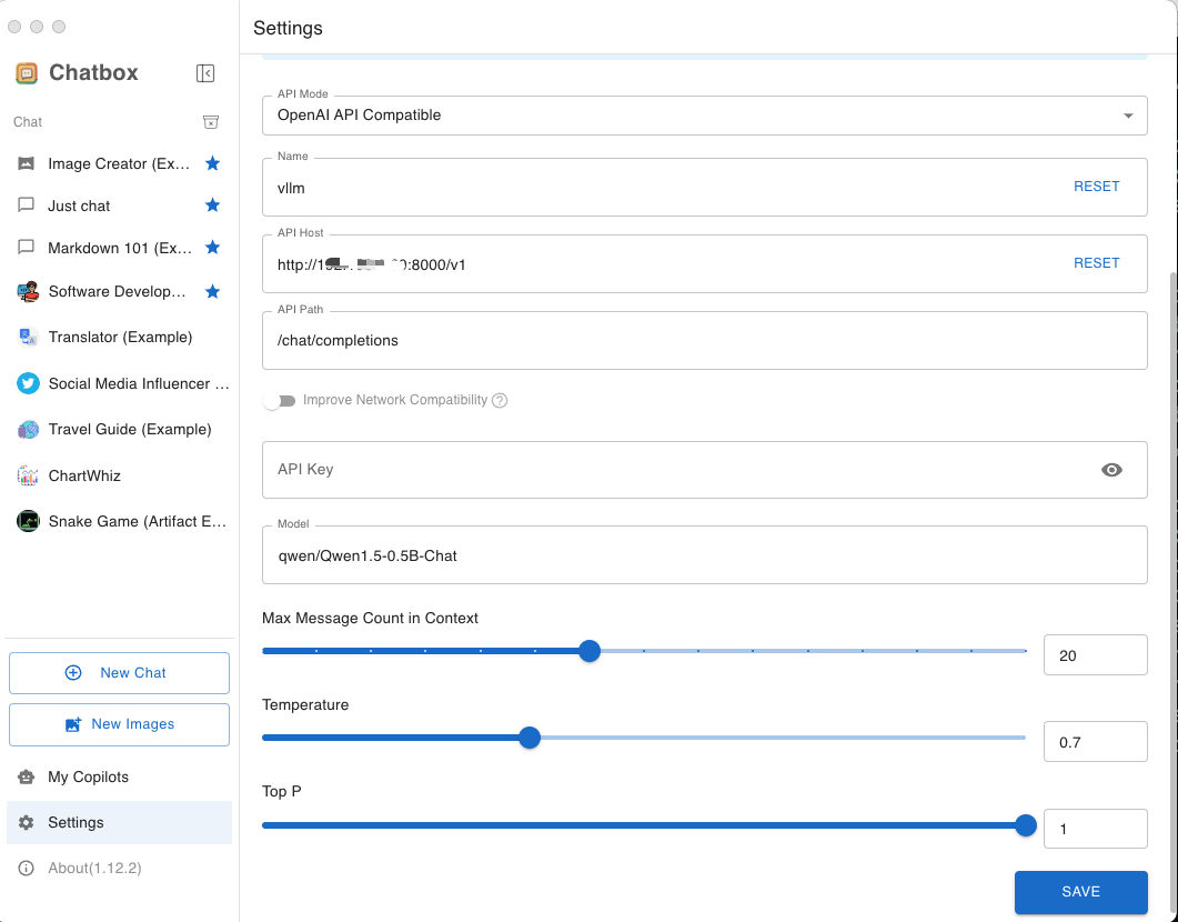 http://{vllm server host}:{vllm server port}/v1 - API Path: